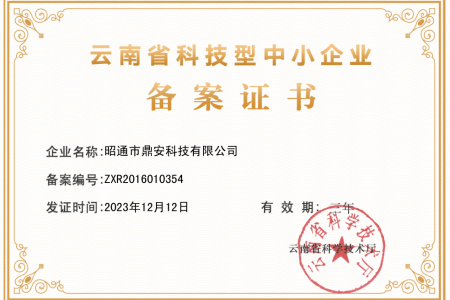 鼎安科技獲得“創(chuàng)新型中小企業(yè)”稱號(hào)